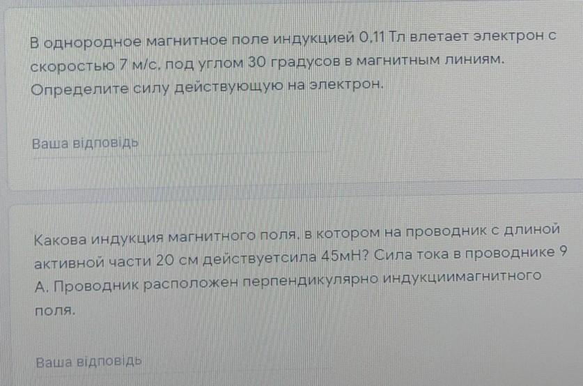 1.На электрон действует сила Лоренца, значит F=q(заряд электрона это табличное значение)*v(скорость)*B(индукция)*sin(30°)
