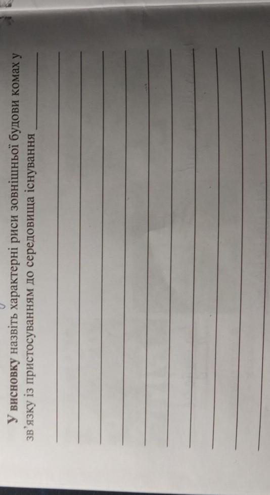 у висновку назвіть характерні риси зовнішньої будови комах у зв'язку із пристосуванням до середовища існування