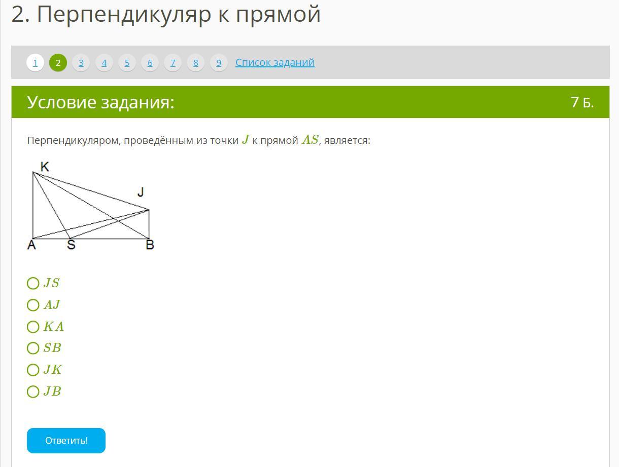 Перпендикуляром, проведённым из точки J к прямой AS , является: