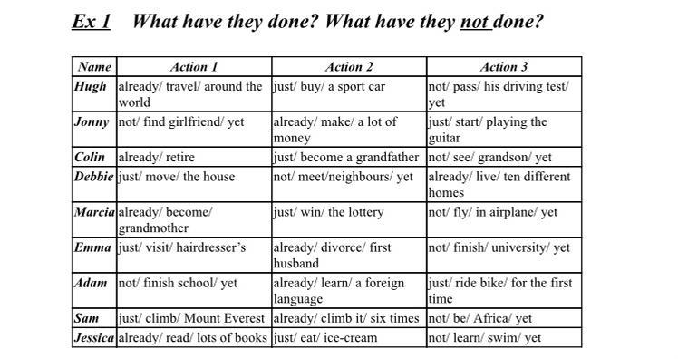 7. Adam hasn't finished school yet. Adam has already learned a foreign language. Adam has just rode a bike for the first time.