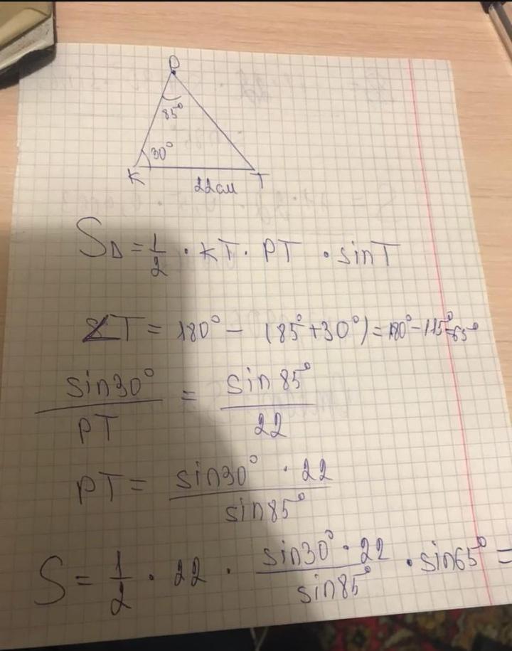 55 балов срочноооо Определи площадь треугольника KBT, если KT = 12 см, ∡K=50°, ∡B=65°.