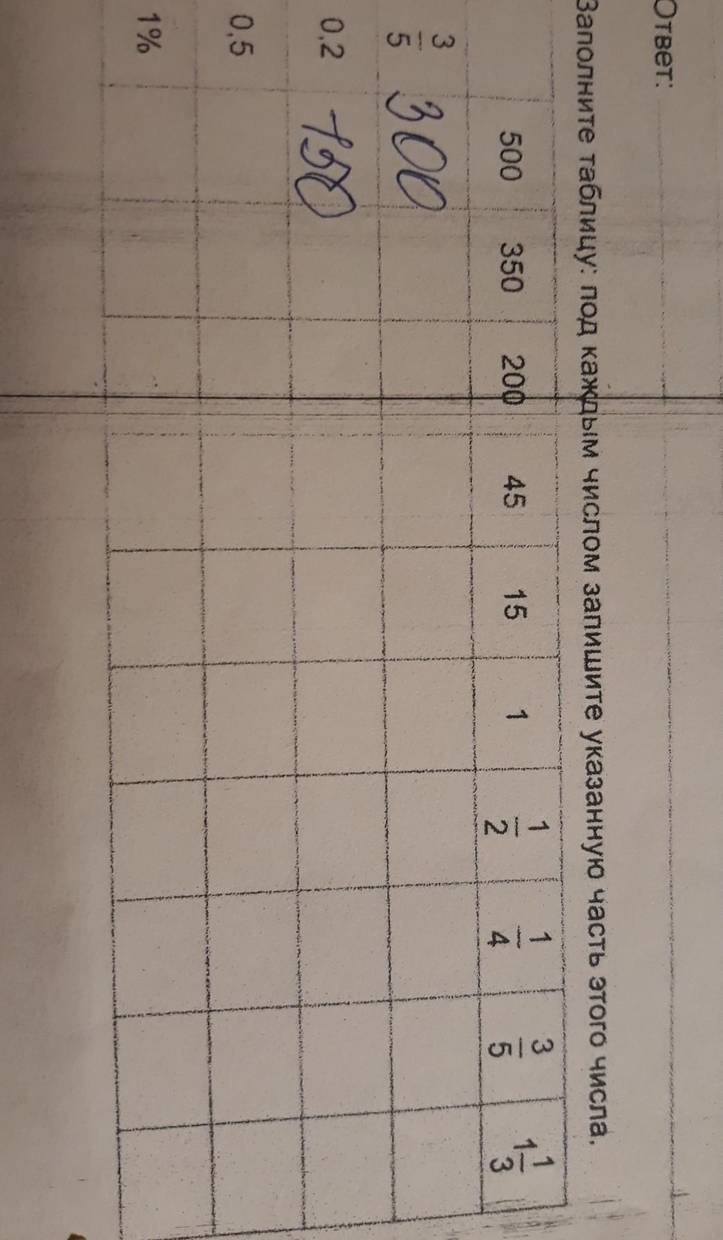 Заполните таблицу под каждым числом запишите указанную часть этого числа.