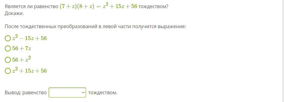 при раскрытии скобок получается левая часть 56+7z+8z+z2(во 2 степени)