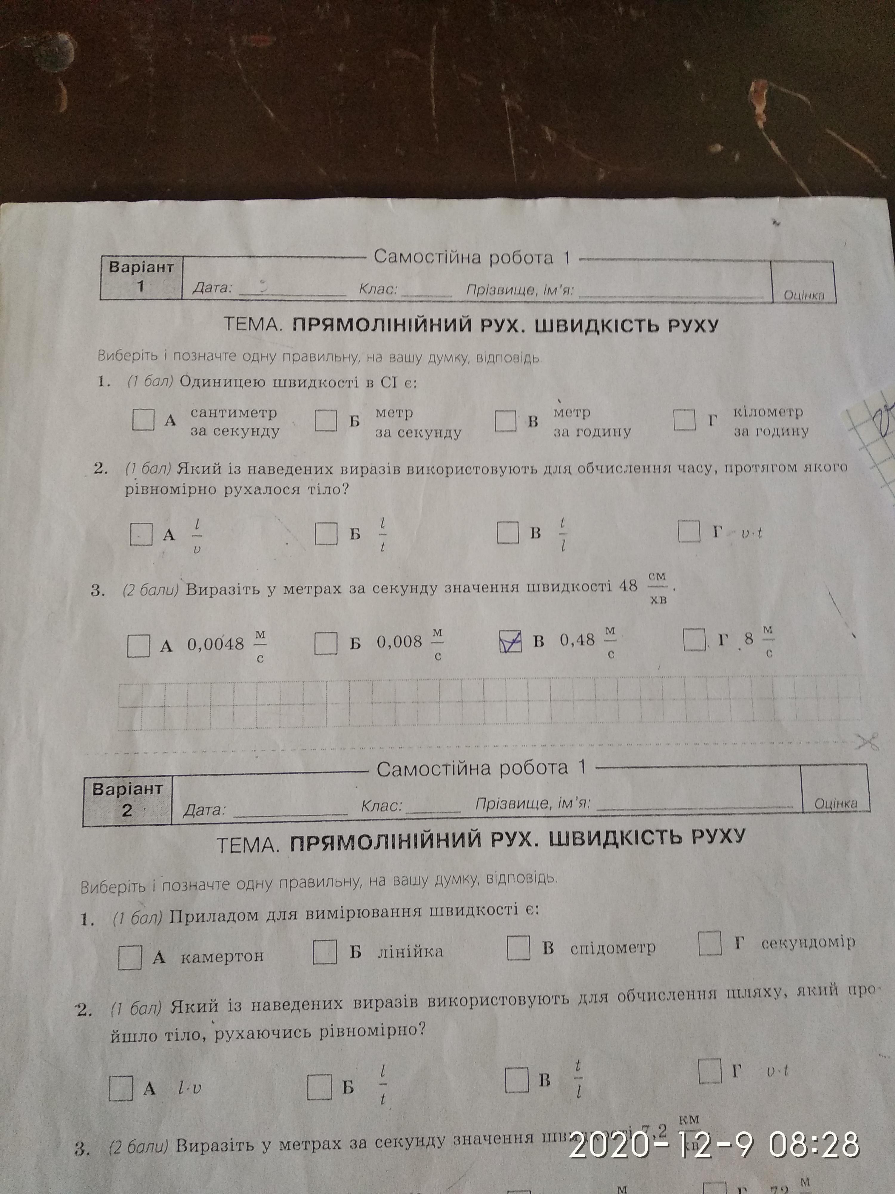 3 Б 0,008м/с(это не точно)