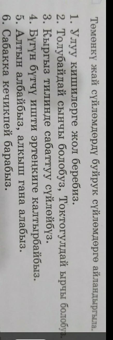 6.Сабакка кечикпей бар(мн число-баргыла(