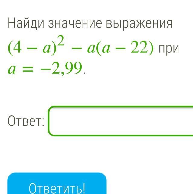 (4-a)^{2}-a(a-22)=16-8a+a^{2} -a^{2}  +22a=16+14a
