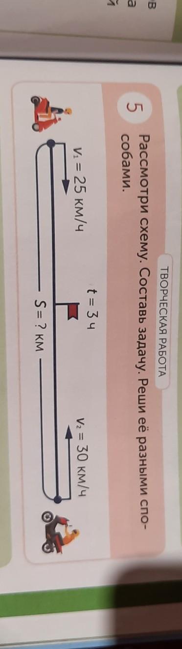 Рассмотри схему. Составь задачу. Реши её разными спо-