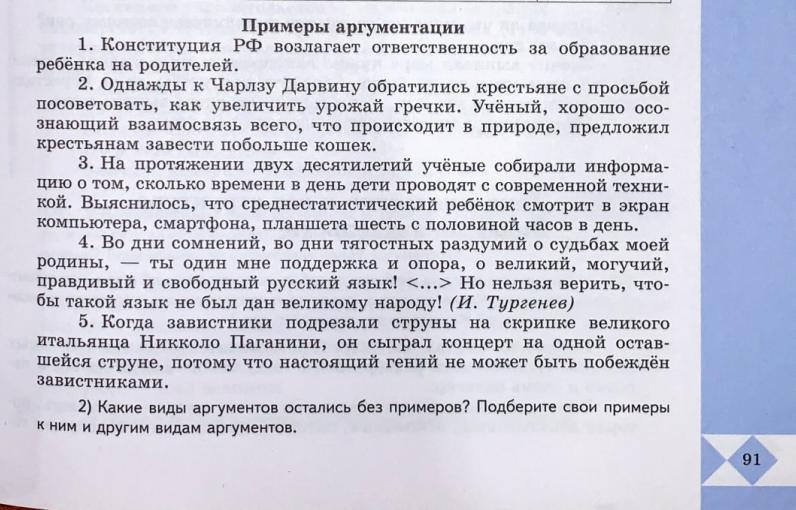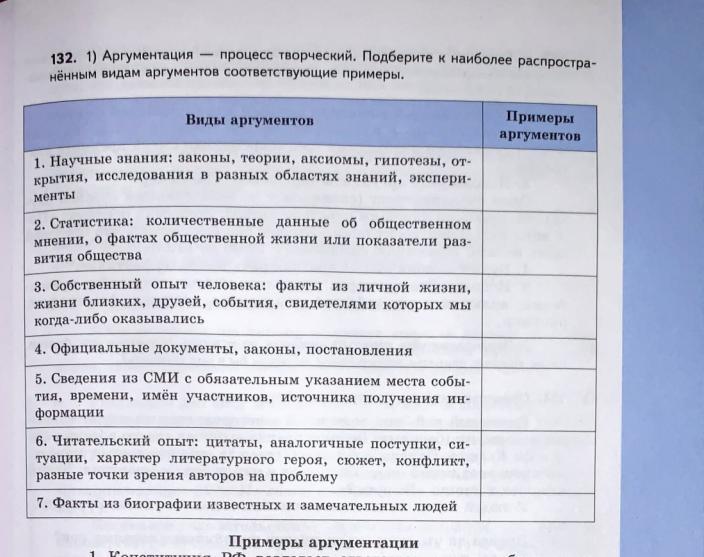 Дам все 45 баллов за ответ. <3 Помогите пожалуйста с упражнением. Подберите к видам аргументов данные примеры.
