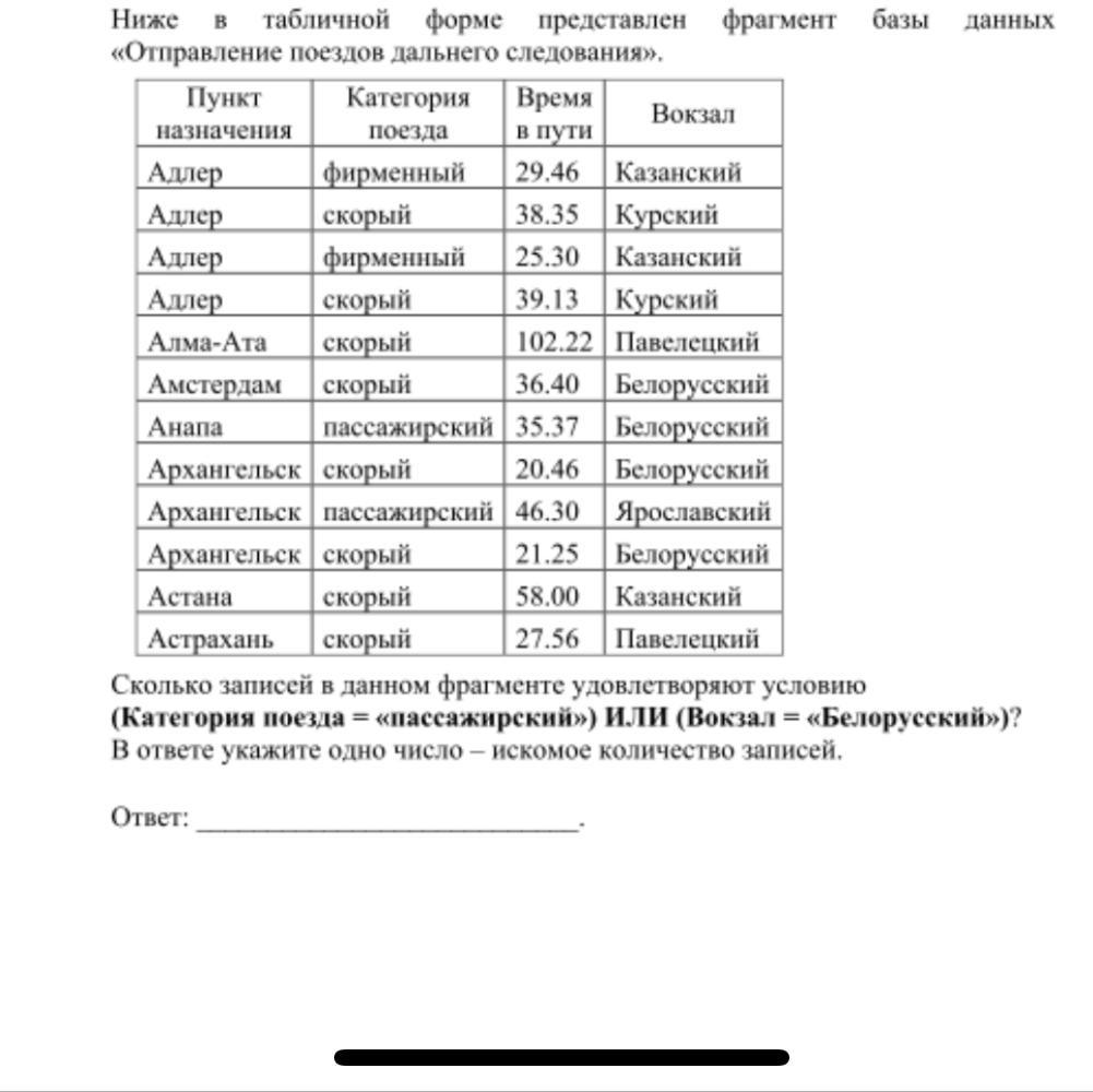 2 (пассажирских поездов) + 4 (белорусский вокзал) = 6 (вариантов ответа удовлетворяющих тому и тому усл.)