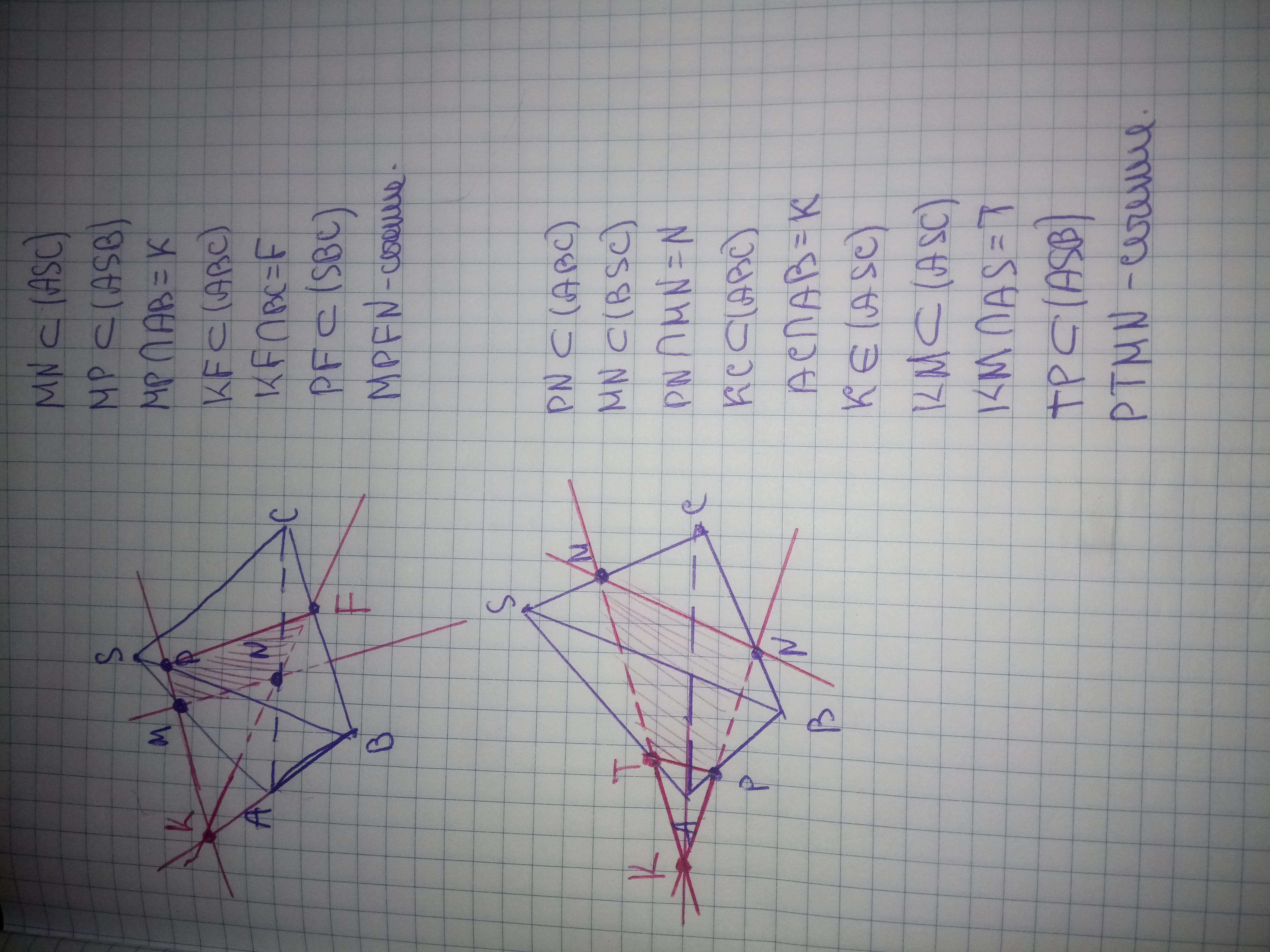 Для задания №1 я построила 2 сечения в зависимости от расположения точек.