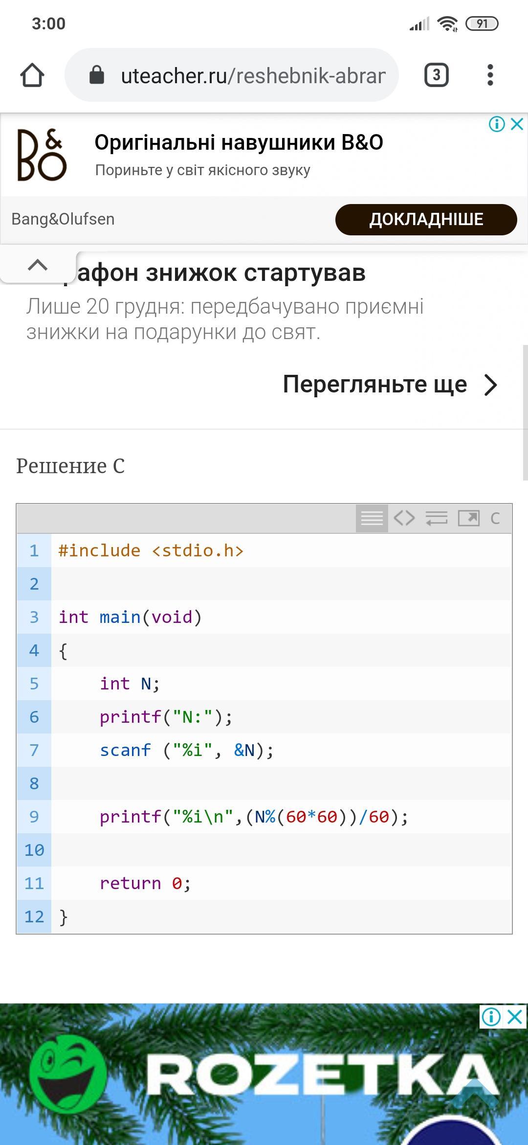 С начала суток прошло N секунд (N — целое). Найти количество полных минут, прошедших с начала последнего часа.