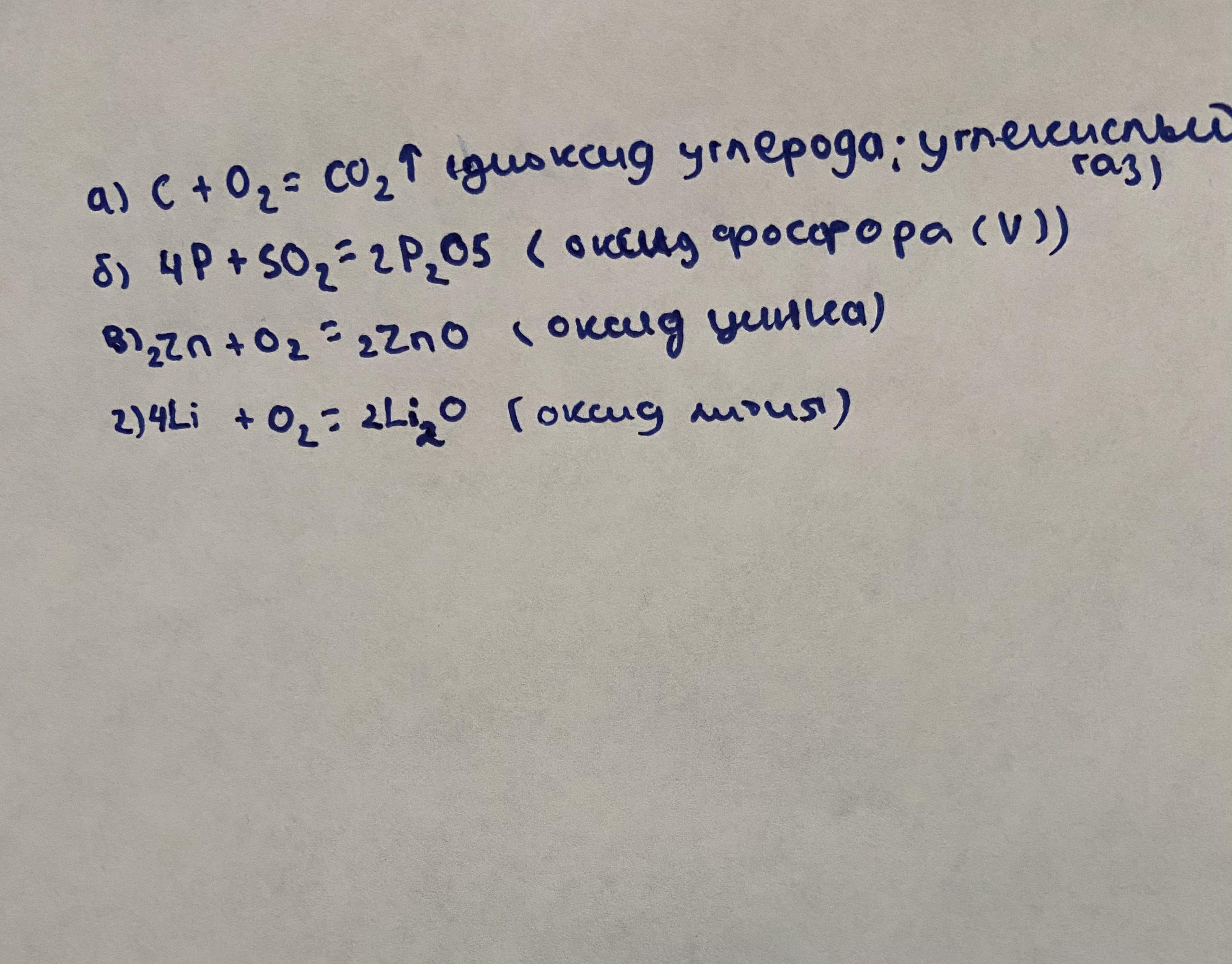 Ответ: реакции полного горения веществ. Перед цинком и литием коэффициенты, а не индексы. Просто ручка съехала