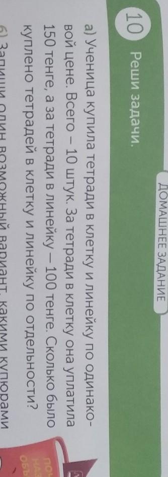 2) 250:10 = 25 (тенге) - цена за одну тетрадь.