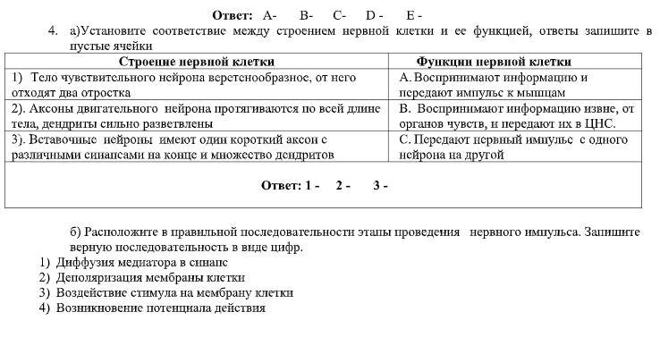 а)Установите соответствие между строением нервной клетки и ее функцией, ответы запишите в