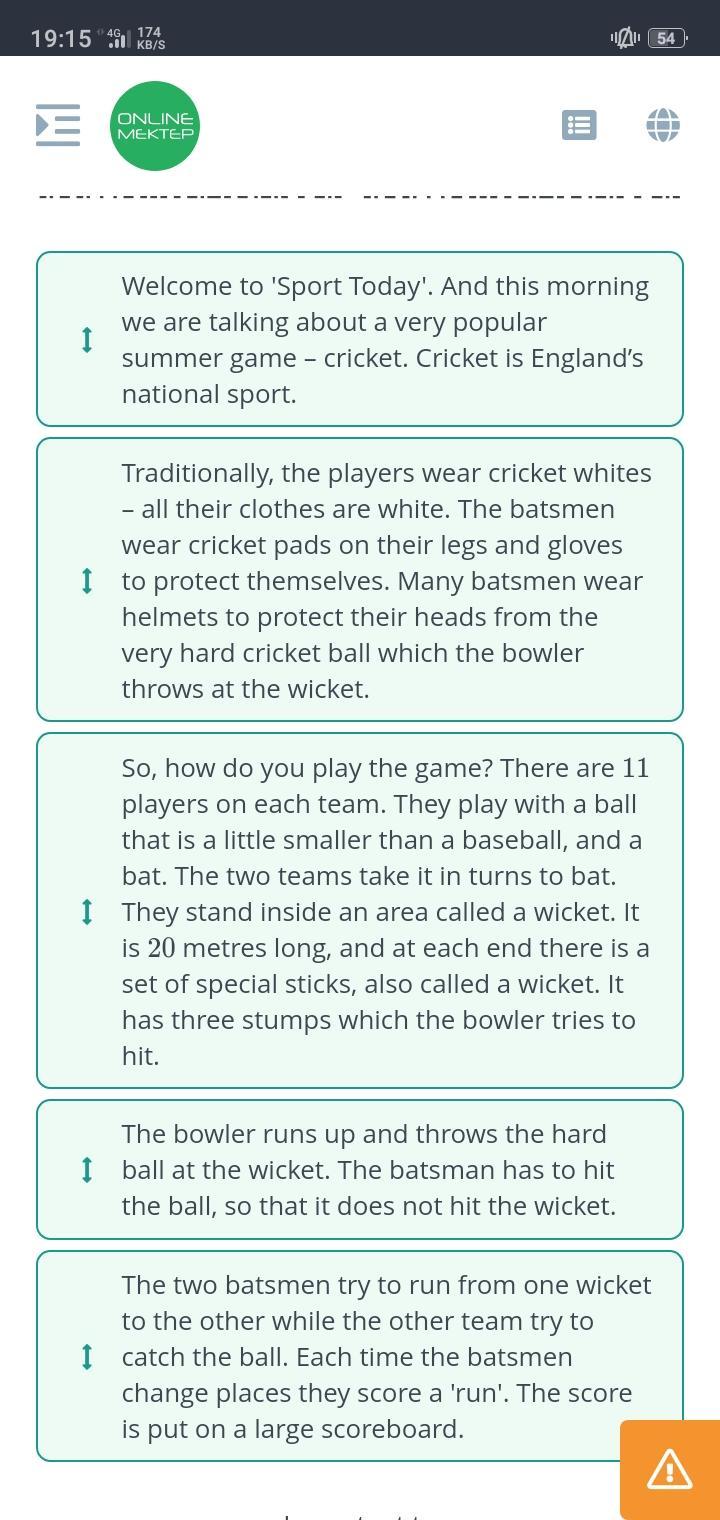 Welcome to 'Sport Today'. And this morning we are talking about a very popular summer game – cricket. Cricket is England’s national sport.