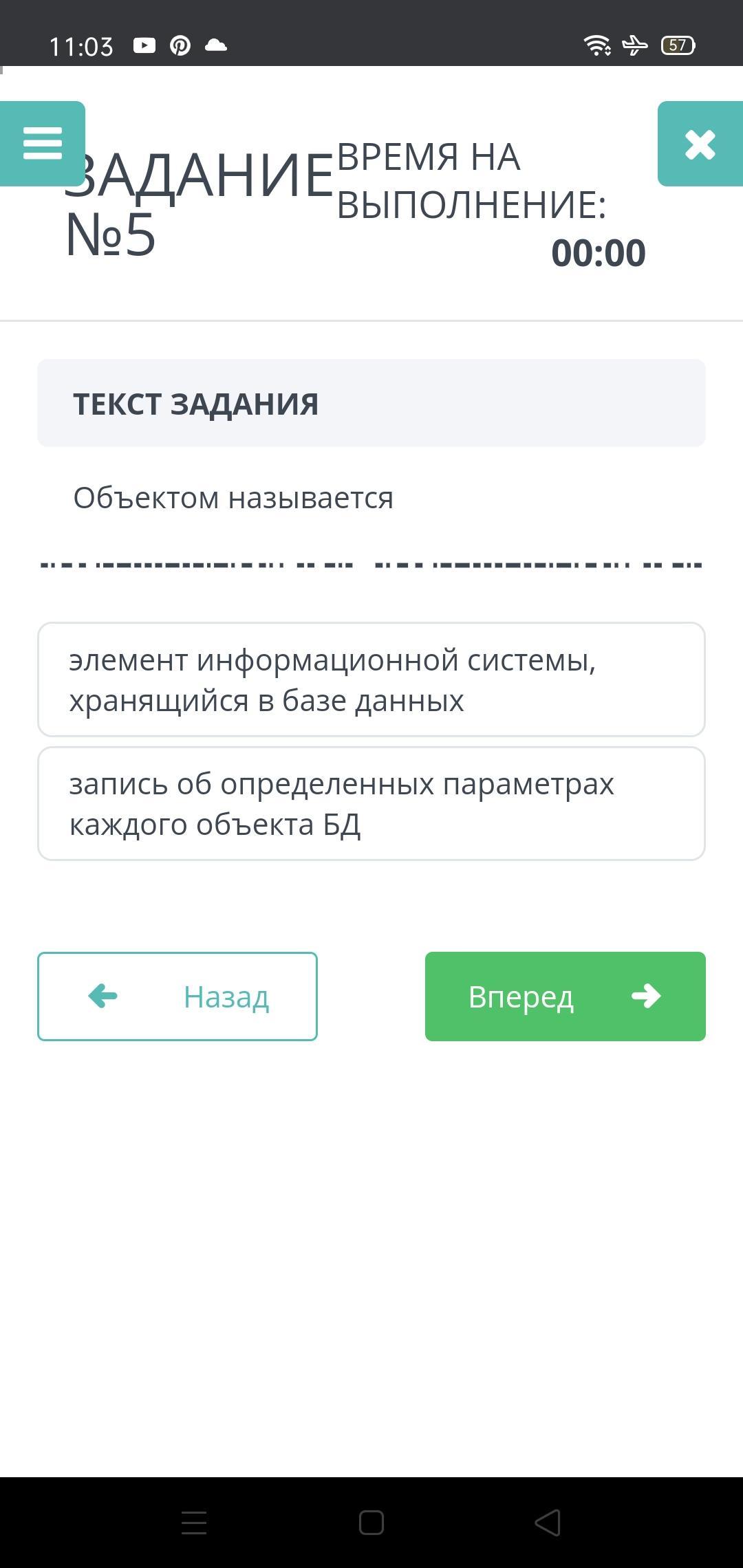 Запись об определённых параметрах каждого объекта БД