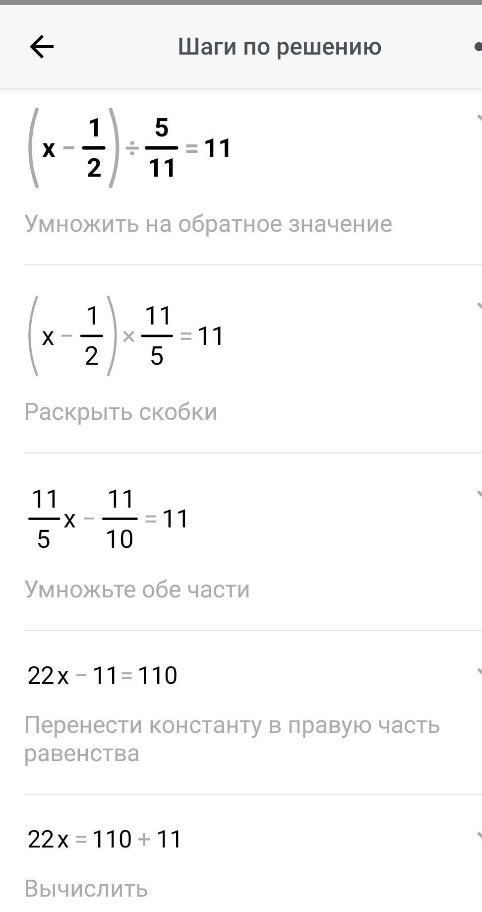 (х-1/2):5/11=11