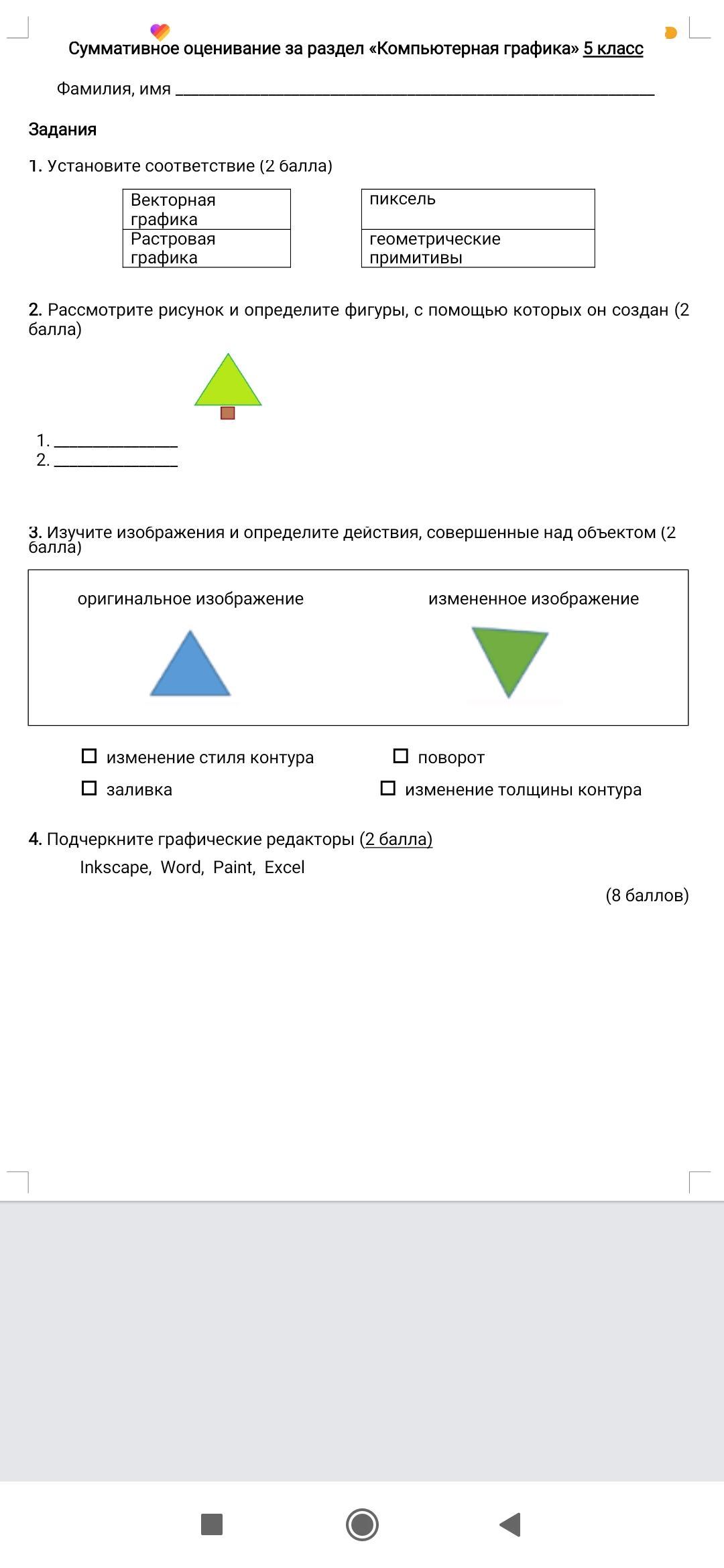 Установите соответствие Векторная графика пиксель Растровая графика геометрические примитивы 1 задание