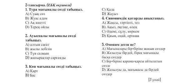 2 тапсырма Тура мағыналы сөзді табыңыз A)суық сөз B)жуас адам C)ақ ниетті D) терең ойды