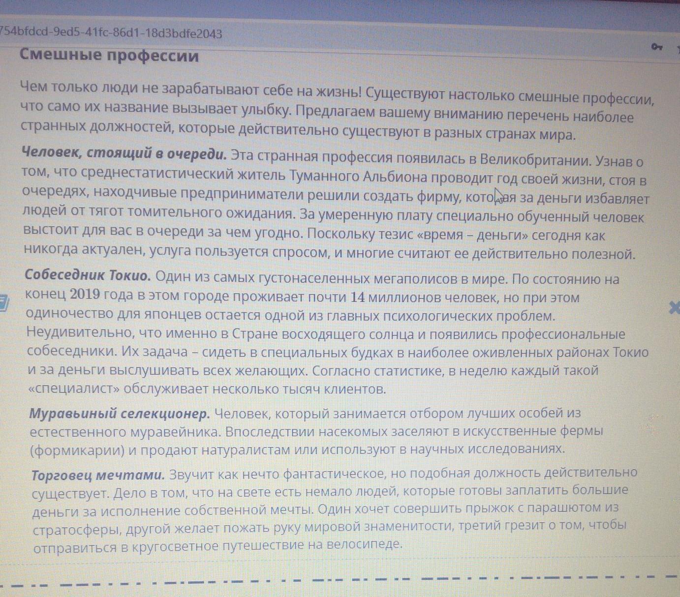 прочитай текст . Соотнесите профессию с рядом относящихся к ней ключевых слов