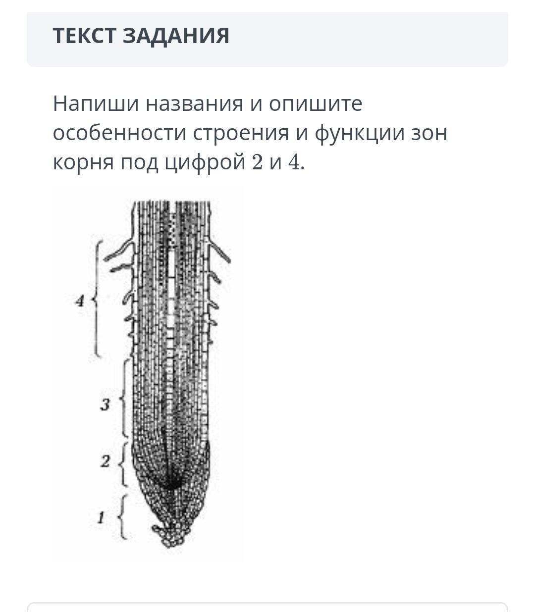 Напиши названия и опишите особенности строения и функции зон корня под цифрой и 2 и 4.