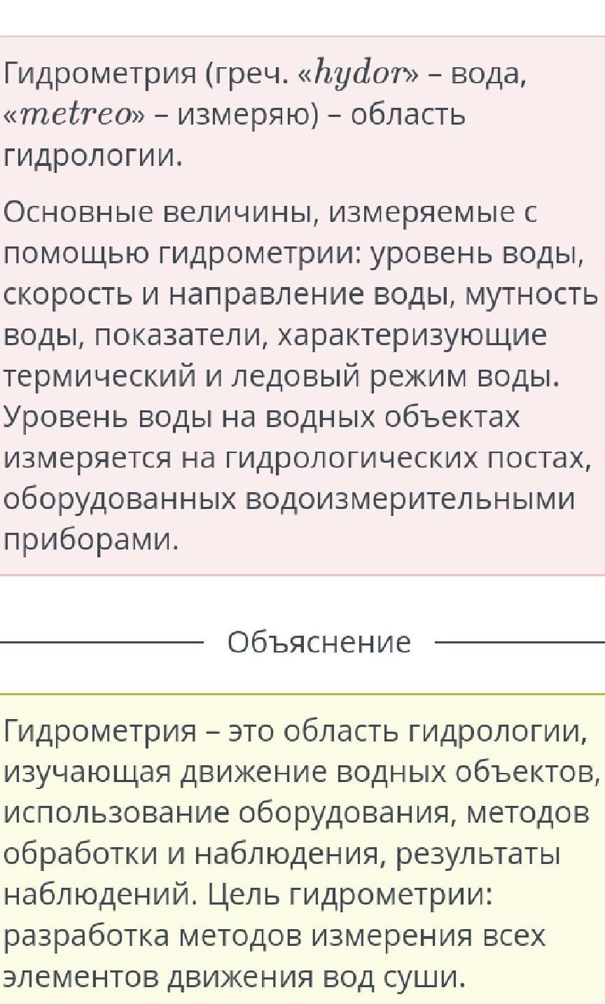 Как называется область гидрологической науки, изучающая скорость, уровень, поток, направление,