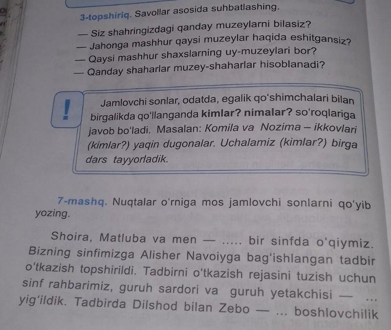 1-Siz shahringizdagi qanday muzeylarni bilasiz?