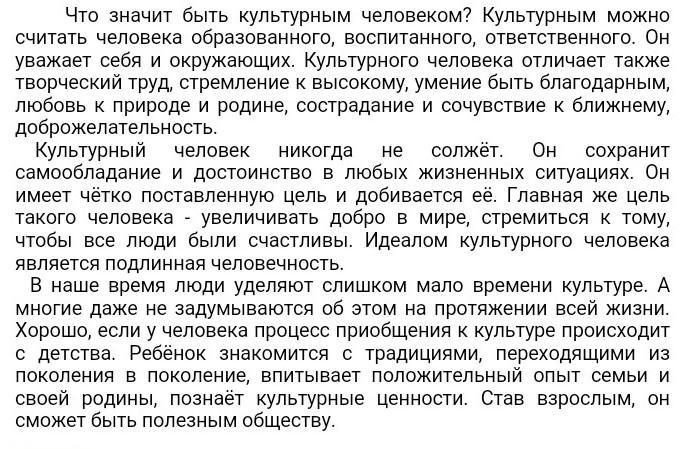 Автор высказывает свое мнение и рассуждает на тему культурного человека. Он обсуждает проблему культурных людей в наше время.