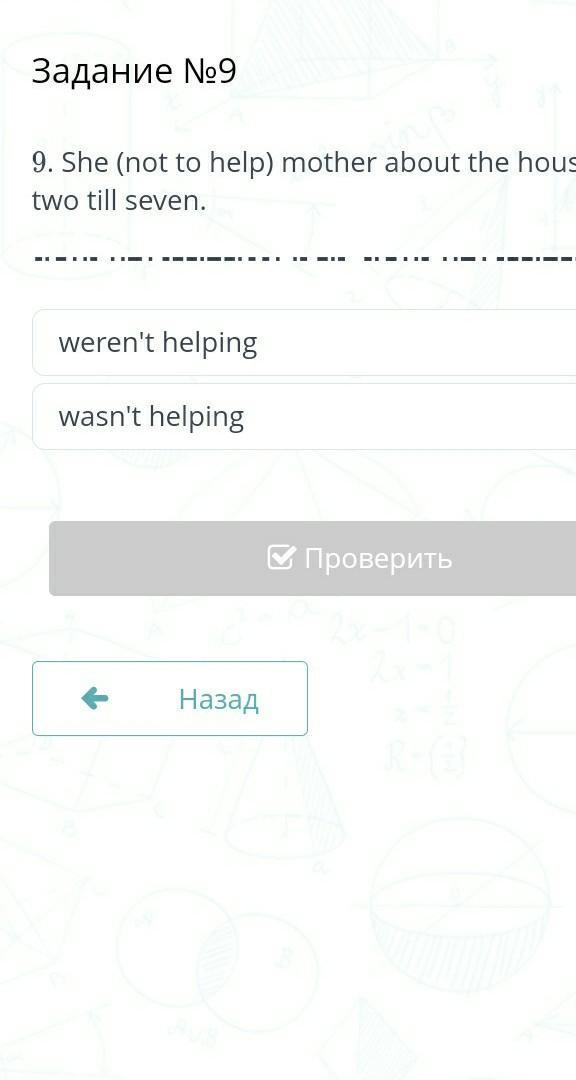 She was not helping mother about the house from two till seven.