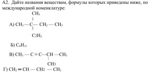 А2. Дайте названия веществам, формулы которых приведены ниже, по