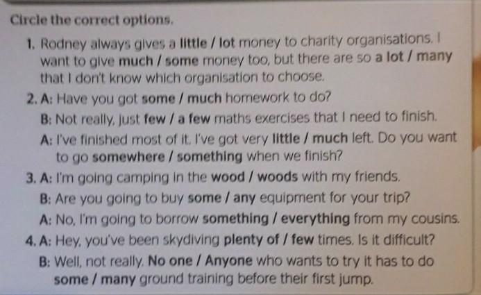 Circle the correct options.1. Rodney always gives a little / lot money to charity organisations,