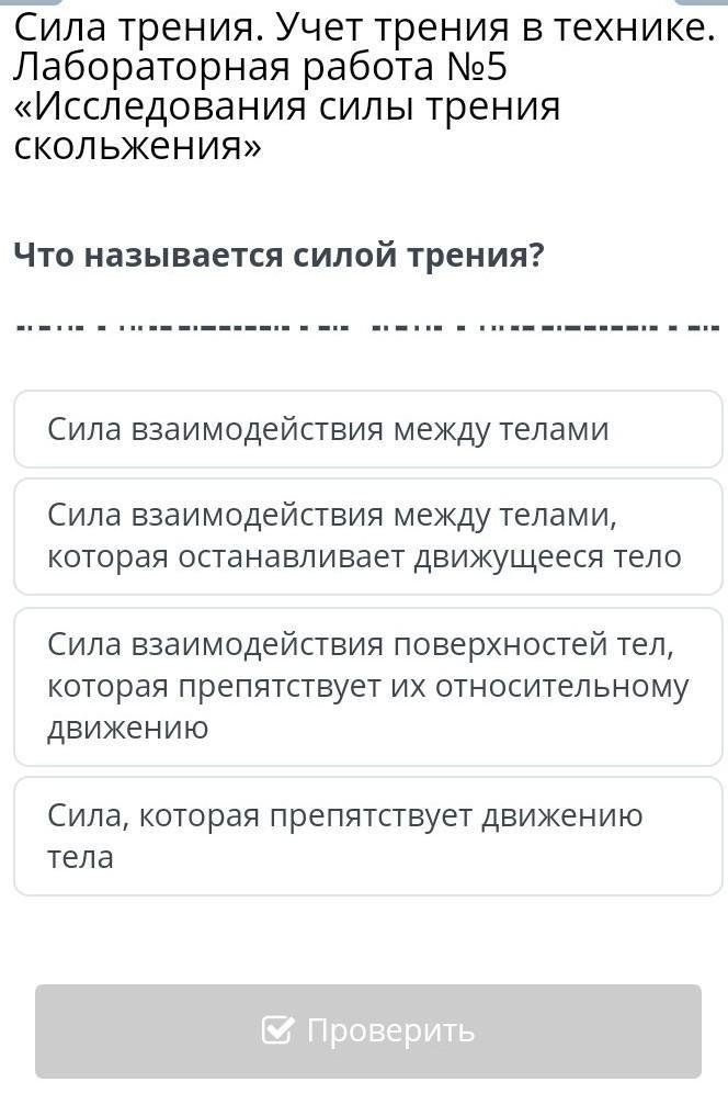 сила взаимодействия поверхностейтел, которая препятствует их относительному движению