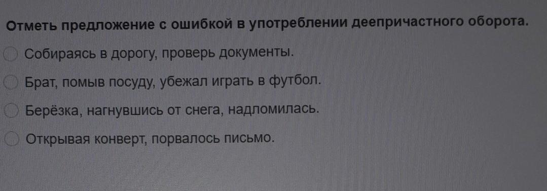 ЗАДАНИЕ НА ФОТО Отметь предложение с ошибкой в употреблении деепричастного оборота.