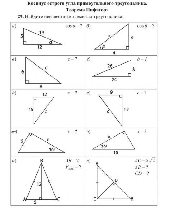 Косинус угла ( cos α ) - отношение прилежащего катета к гипотенузе.