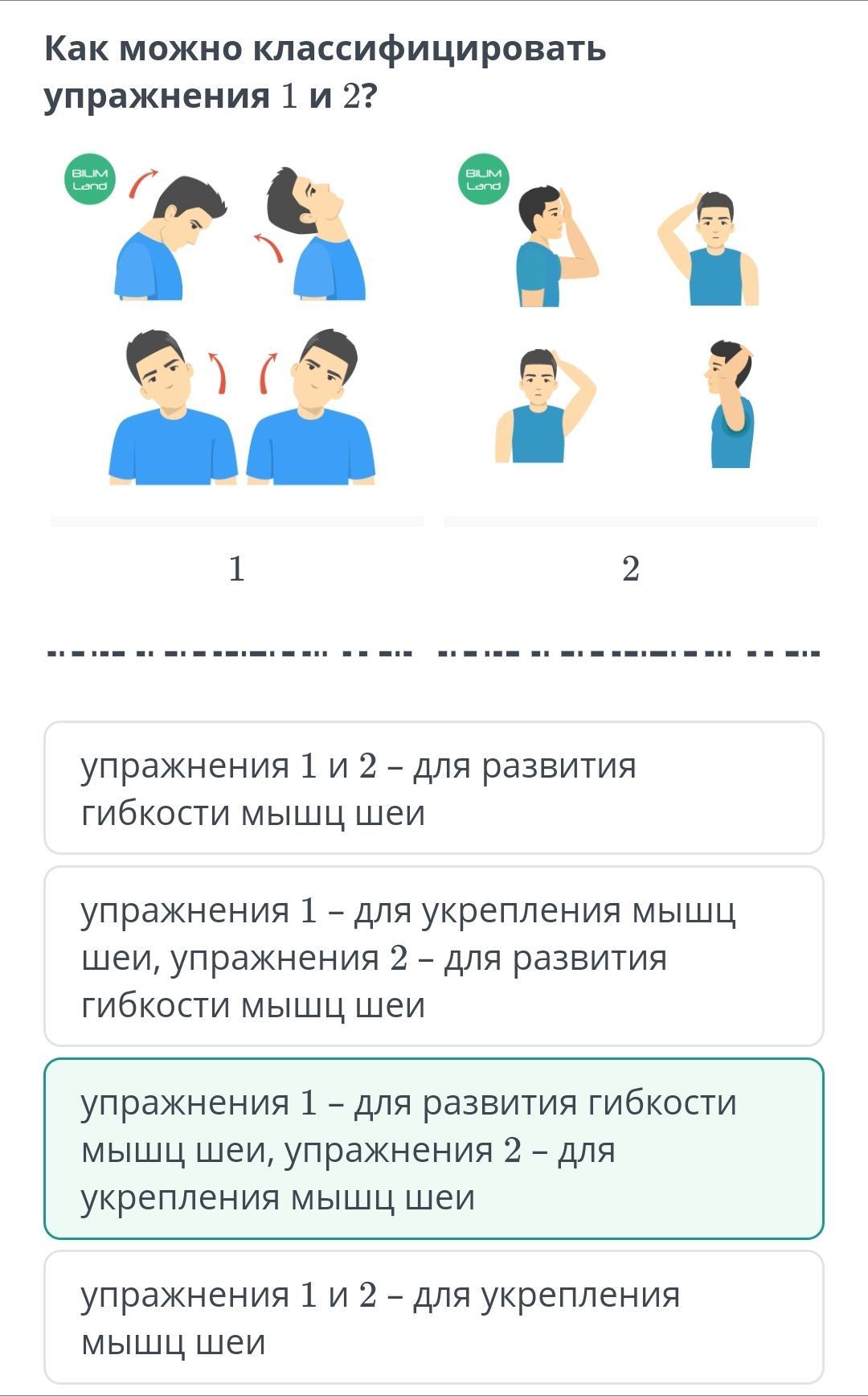 упражнение 1-для РАЗВИТИЯ гибкости мышц шеи, упражнение 2-для УКРЕПЛЕНИЯ мышц шеи