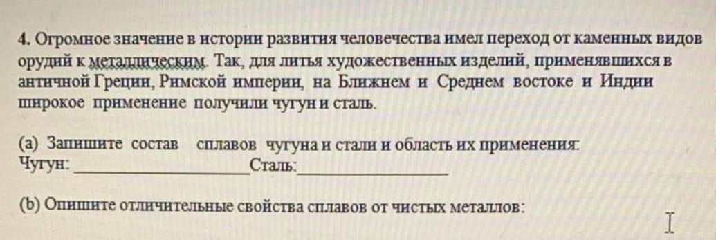 а)Чугун: сплав железа и углерода, в котором содержание углерода не менее 2,14 %. Чугун всегда применялся для изготовления деталей и предметов тяжелой промышленности.