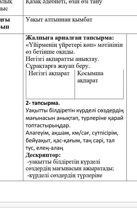 Бәріккен сөз: алагеуім, ақшам, сүтпісірім, бейуақыт.