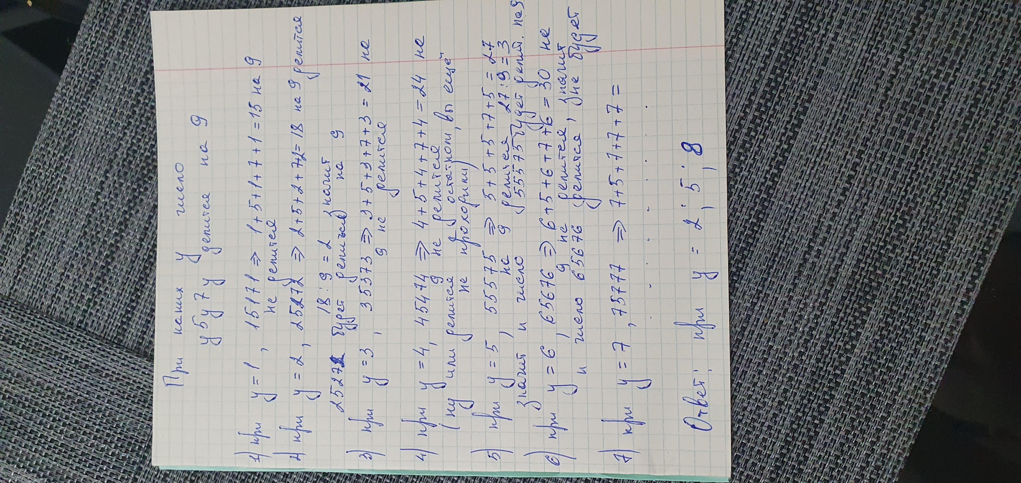 При каких значениях у число у5у7у делится на 9?