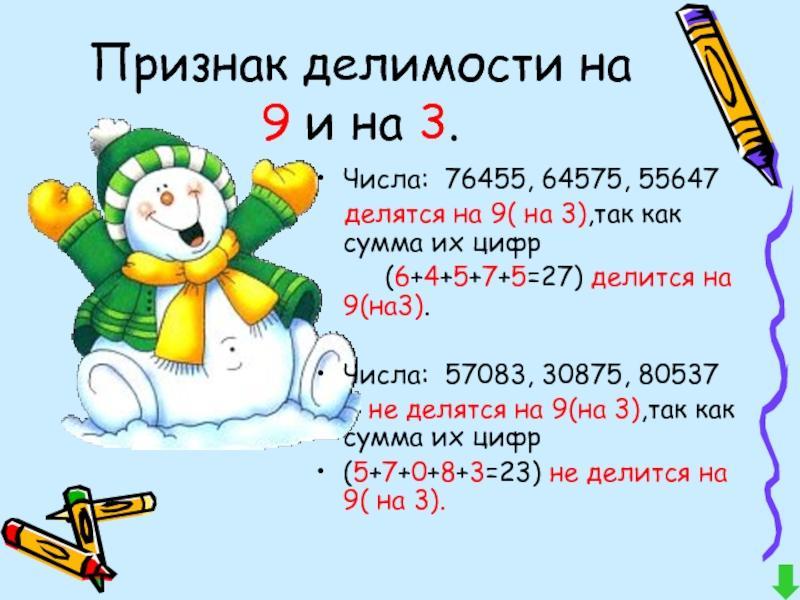 Там всё очень просто, если сумма цифр числа делится на 9(3), то и само число делится на 9(3)