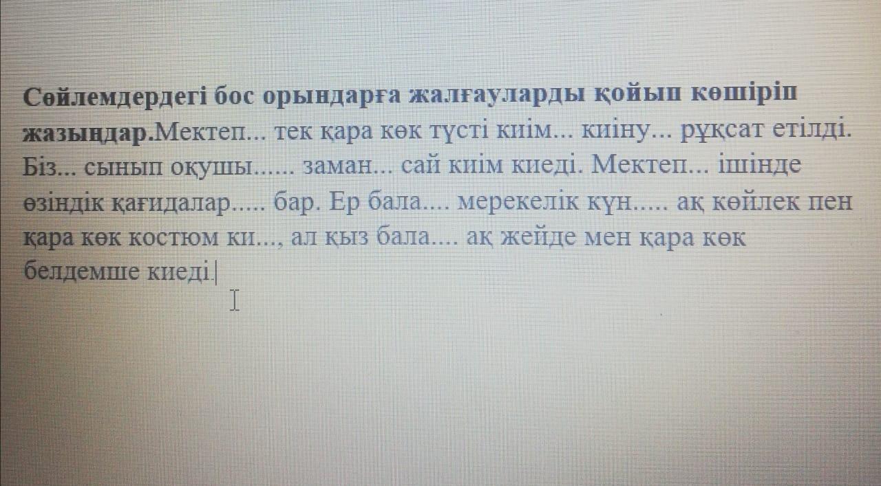 Мектепте тек қана қара көк түсті киімдерді киінуге рұқсат етілді. Біздің сынып оқушылары заманға сай киім киеді. Мектептің ішінде өзіндік қағидалары бар. Ер балалар мерекелік күндерде ақ көйлекпен қара костюм киеді, ал қыз балалар ақ жейде мен көк белдемше киеді.