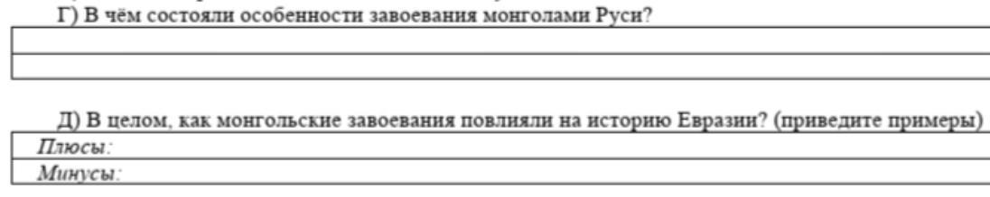 Д) Плюсы (конкретно Руси): Русь была защищена Золотой Ордой от набегов внешних врагов.