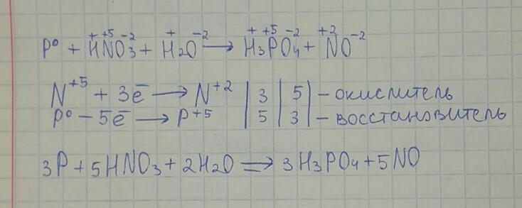 3.Процесс ОВР представлен уравнением: P+HNO3 + H2 O = H3 PO4 +NO