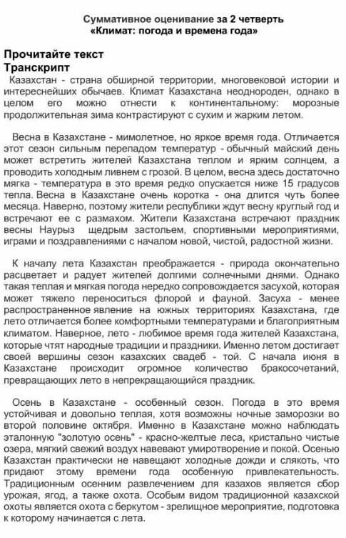 а суммативное оценивание за 2 четверть климат и погода и времена года. определите тему?