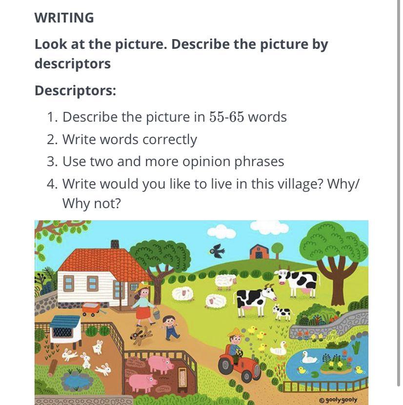 On this picture, we can see the farm. There are a lot of animals: cow, bunny, sheep, duck, pig and other animals. Also we can see the girl and her brother, they are playing together.