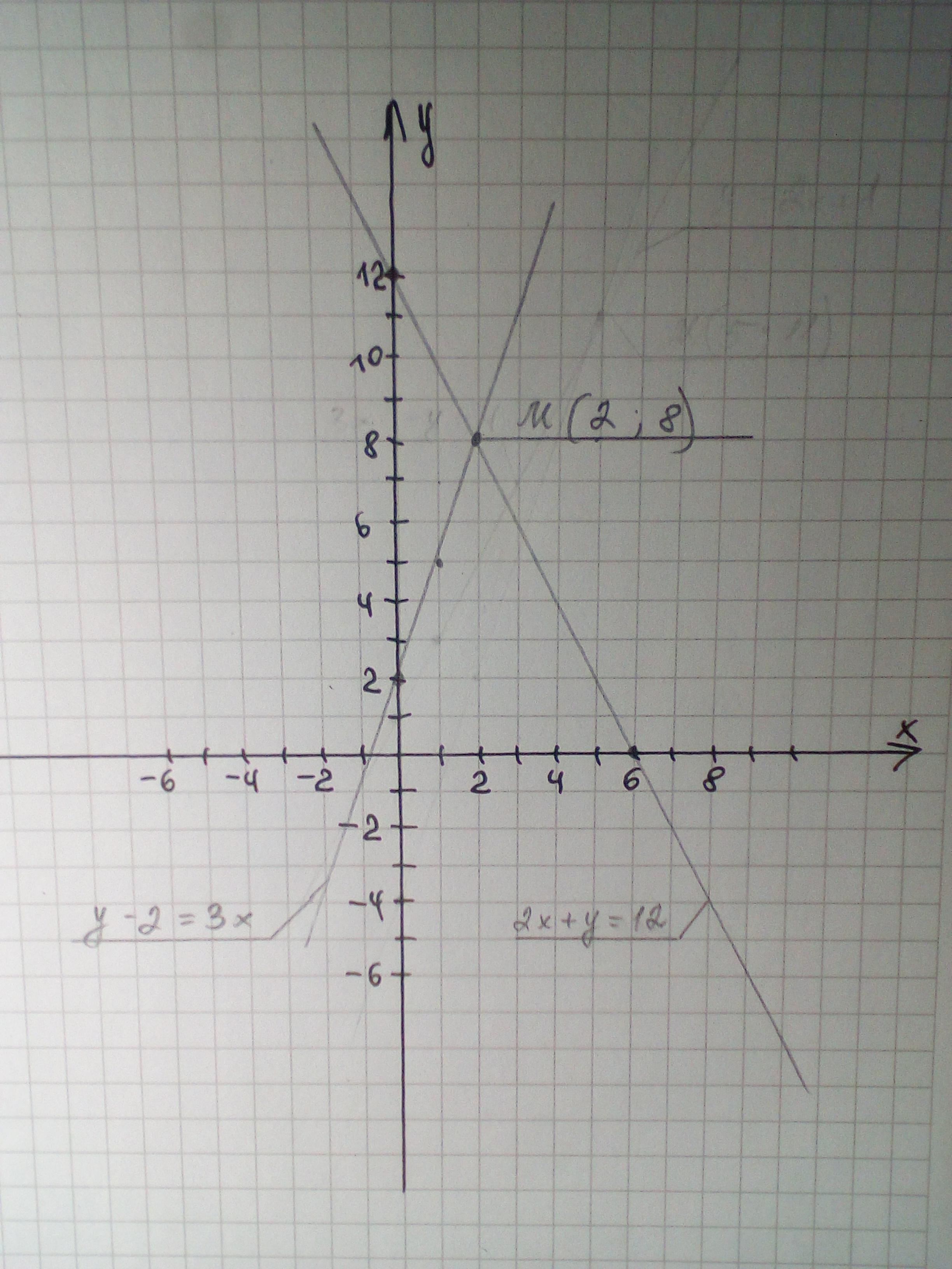 у-2=3х; у=3х+2; х=0 у=2; х=1 у=5