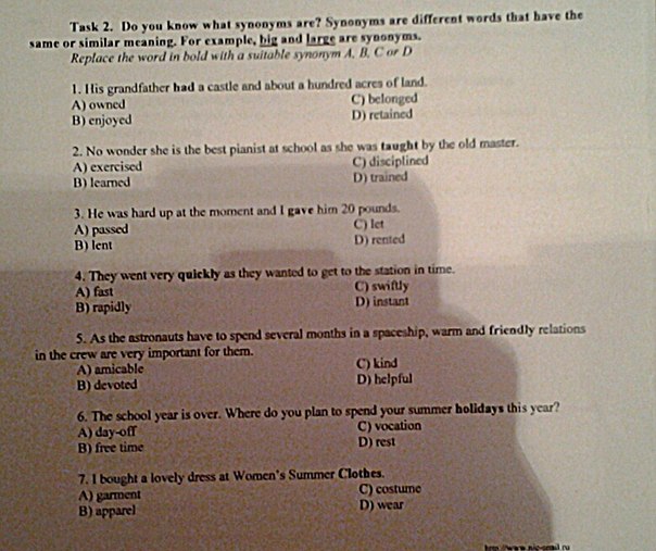Replace the word in bold with a suitable synonym A, B, C , or D.