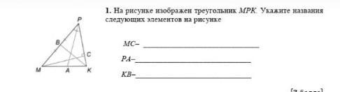 На рисунке изображен треугольник МРК Укажите названия следующих элементов на рисунке