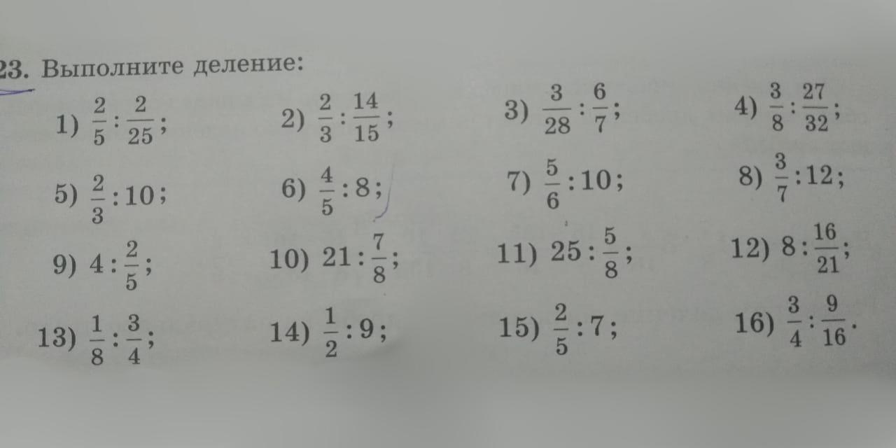 надо в каждом примере перевернуть вторую дробь и заменить деление на умножение , тогда можно сократить цифры . все легко думай !!!!