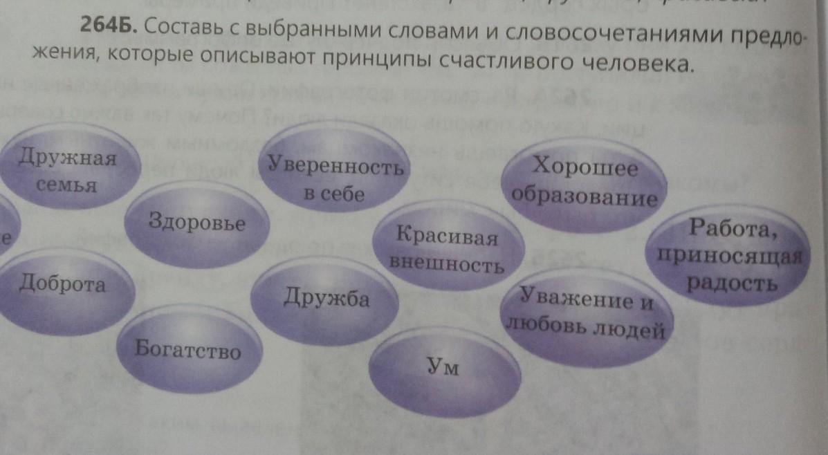 Составь выбранными словами и словосочетаниями предложения которые описывают в принципе счастливого человека