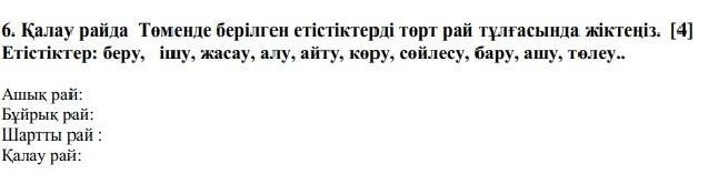 Бұйрық рай: бер, іш, жаса, ал, айт, көр, сөйле, бар, аш, төле.